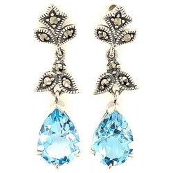 Sterling silver marcasite stud earrings. Hand set with marcasite. Features pear Blue Topaz 10x8mm. L..